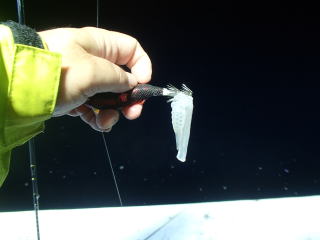 | 先週は小浜へ行ったのだが、サイズは良かったものの数がイマイチであった。しかも水深が80mもあり、ほぼ底狙いで釣りづらかった。そこで今度は行き慣れた越前町へ行こうと思った。 この日の波予報は穏やかで、また翌日以降は自分の用事もあって、出かけにくい日程であったので・・・無職になってもあれこれあって、いつでもOKというわけにはいかないと再認識した(^^:) 仕事をしている時に比べたら、格段に行くことができる機会は増えたのだが。 前日の昼過ぎに心友丸に電話すると、また今週も予約がないということだった。で、一応夜まで待って、再度確認することで一旦は電話を終えた。 追加の予約が入らないと行けないので、ネットを見ながらどこか空いている船を探していたところ、夕方船長から電話があり、「新たに一人予約が入ったからOK」との連絡があった。でも、「自分とその人と二人だと出船は無理だよね」というと、船長は「明日までに増えるかもしれんから」ということで行けることになった。 当日は16時~16時半に集合といわれたので、いつものように12時に出発し、関ケ原からは一般道を走って15時30分には現地に着いた。 ![]() 船長と先週の小浜の話をしながら時間を過ごしていると、16時過ぎにもう一人の客が来た。 結局人数は増えなかったようで、今日は自分とその人の二人だけの贅沢な釣行となった(^^)/ 釣り座は左舷の後ろに私、右舷に他の一人が入った。二人だけなので、その人といろいろな話をした。 17時過ぎに出港し、20分程南に走って水深35mのポイントにアンカーが入った。先週の80mに比べれば、格段に浅く、最後まで手巻きリールで釣ることができた。 同じ水深の辺りがポイントらしく、見渡す範囲には等間隔を空けて、他の船がほぼ同じラインに並んでいた。 曇りながらもまだ明るくて、イカの気配はなかった。鉛スッテ単体を遠投したり、魚でもと思ってジグを投げてみるがアタリすらなかった。やはり春から初夏だと、まだ魚もいないらしい。秋なら何か当たったのかもしれないが・・・とりあえず夕食を摂って時間を過ごした。 19時過ぎに点灯した。しかし、すぐに反応があるほど甘くはなかった。 1パイ目が釣れたのは、点灯してから30分以上経った頃で、30mで中サイズのケンサキイカが釣れた。でも、すぐには後が続かず、その後はぽつりぽつりのスペースでケンサキイカを追加した。 ![]() ![]() 私のペースに比べて、もう一人の人はいいペースで数を重ねていた。終わってみると、私の1.5倍ケンサキイカを釣っていたので、さすがである。 21時近くになると、小さい虫が大量に飛んでいて鬱陶しいがどうしようもない。幸いなのは、刺される虫ではないので、無視していればいいのが・・・気になると邪魔だった。 また、水面にサヨリが泳いでるのも見えたが、やたらとサバが湧いて泳いでいた。途中数回スッテに食いついたが、水面までには外れてスッテを呑み込まれることはなかった。 また、せっかく掛かったケンサキイカを途中で魚に取られることも増えてきて、ゲソのみが付いていることが度々あった(涙) ![]() ![]() エソなのか、他の魚なのか・・・タイラバを持っていくつもりだったのに、忘れてしまったので確認することはできなかった。 10パイ程度釣った後、アタリが遠のいたので、一つスッテで遠投したら、小型が2ハイ釣れた。 しかし、その作戦もそれまでであった。 そこで、目先を変えようとオモリグ仕掛けにチェンジして、ちょい投げしてから誘って足元まで来た時に、竿をあおった。するといい感じの手ごたえがあった後、ふっと軽くなった(泣) あれっ??フグかサゴシにでも切られたか??と思って巻き上げると、PEの途中で高切れしていた。 う~んと思いながら、よく見てみるとPEの先が二重で結び目がある。どうもリーダーとの結節部分がほどけたようである。古いラインをまだ使えるかと使用したのがいけなかった。実は、釣行前に新しいラインを巻こうかと思っていたのだが、ずるくもう一回と考えていたせいでイカが逃げただけでなく、オモリとエギも失ってしまった(泣) 次からはライン代をケチらず、ちゃんとしようと自分に言い聞かせた。 その後少し流れが出てきたので、メタルにオモリグ仕掛けを付けたのだが、反応はなかった。 そこでメタル仕掛けに戻し、探ると20mで1パイ釣れた。浅い棚でもいのかなと思って狙ったら、その後はスルメイカが連発だった。 う~んもう一人の人はポツポツではあるが、ケンサキイカを追加している・・・でも自分はスルメに遊ばれている。 ベイトリールだと仕掛けが落ちていくのがゆっくりで、途中でサバやスルメかにやられてしまうので何とかしようと考えた。 22時を回り、残り1時間。スピニングのタックルはリーダーからなくなってPEラインが高切れしていたが、まあいいかとメタル仕掛けを付けてちょい投げ作戦に変更した。すると、寄せてくる途中ではアタリはないが、足元まで寄せて底へ落